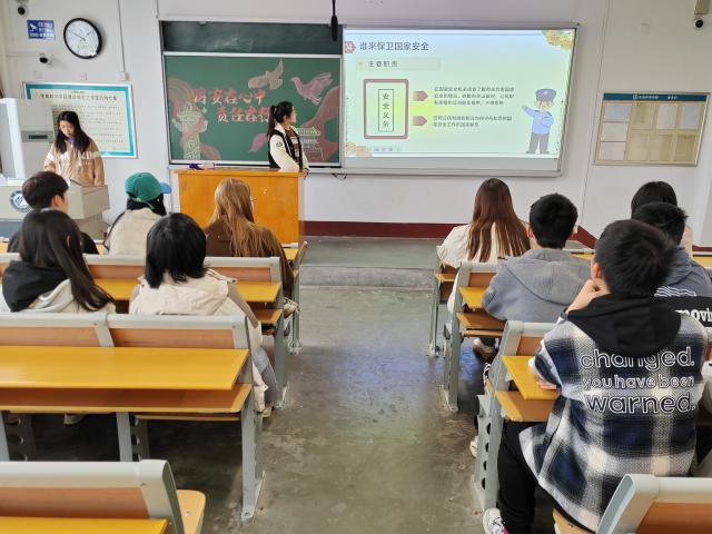 国安无小事,活动伊始,主持人首先向在场的同学们介绍了此次活动的背景和意义,强调了国家安全对于国家生存与发展的重要性,并指出每个公民都应当成为国家安全的守护者。随后,播放的《平“语”近人》国家安全主题节目,通过生动的画面和详实的案例从政治安全、经济安全、社会安全到网络安全展示了国家安全面临的复杂形势和严峻挑战。视频内容涵盖了国家安全的多个领域,让同学们对国家安全有了更深刻的认识。在视频播放的过程中,同学们聚精会神地观看,被视频中展现的安全威胁所震撼,也更加明白了国家安全的重要性。活动的最后,主持人进行了简短的总结,每个人都应当对国家安全保持时刻警惕,增强防范意识。她呼吁同学们将所学到的安全知识运用到日常生活中,共同为国家的安全稳定贡献力量。同时希望通过所学所悟所感辐射影响更多的人,推动国家安全理念深入人心、落地生根。