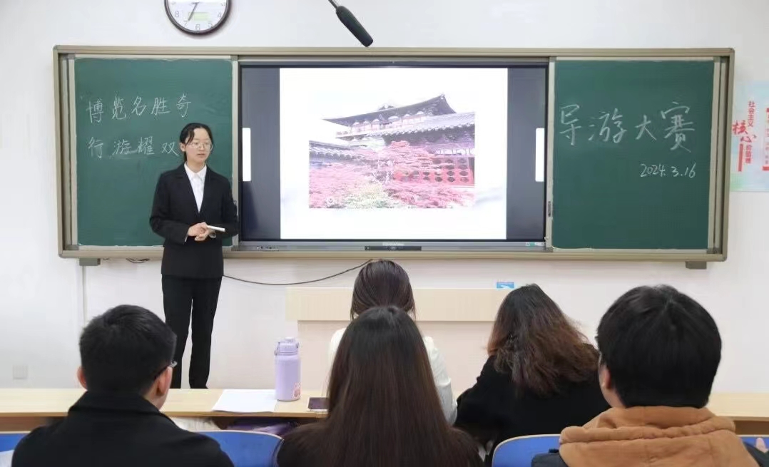 为提升我院学生的专业技能和综合素质,加强对复合型人才的培养,助推学生掌握旅游向导应具备的能力,3月25日,历史文化与旅游学院于6#A304教室举办“博览名胜奇,行游耀双辉”导游大赛。