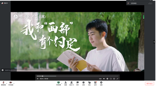 青年当有志,立志在四方。通过播放商学院(质量学院)往届西部计划志愿者录制视频,志愿者们向学生介绍了在新疆的工作以及当地的风土人情,号召学生勇敢踏上西部之旅,到祖国最需要的地方。最后,主持人为学生详细讲解了参加西部计划所需准备的事项,包括从事的服务岗位、对未来就业的帮助以及西部计划相关保障机制等,让学生对西部计划有更加清晰、深入、全面的了解。