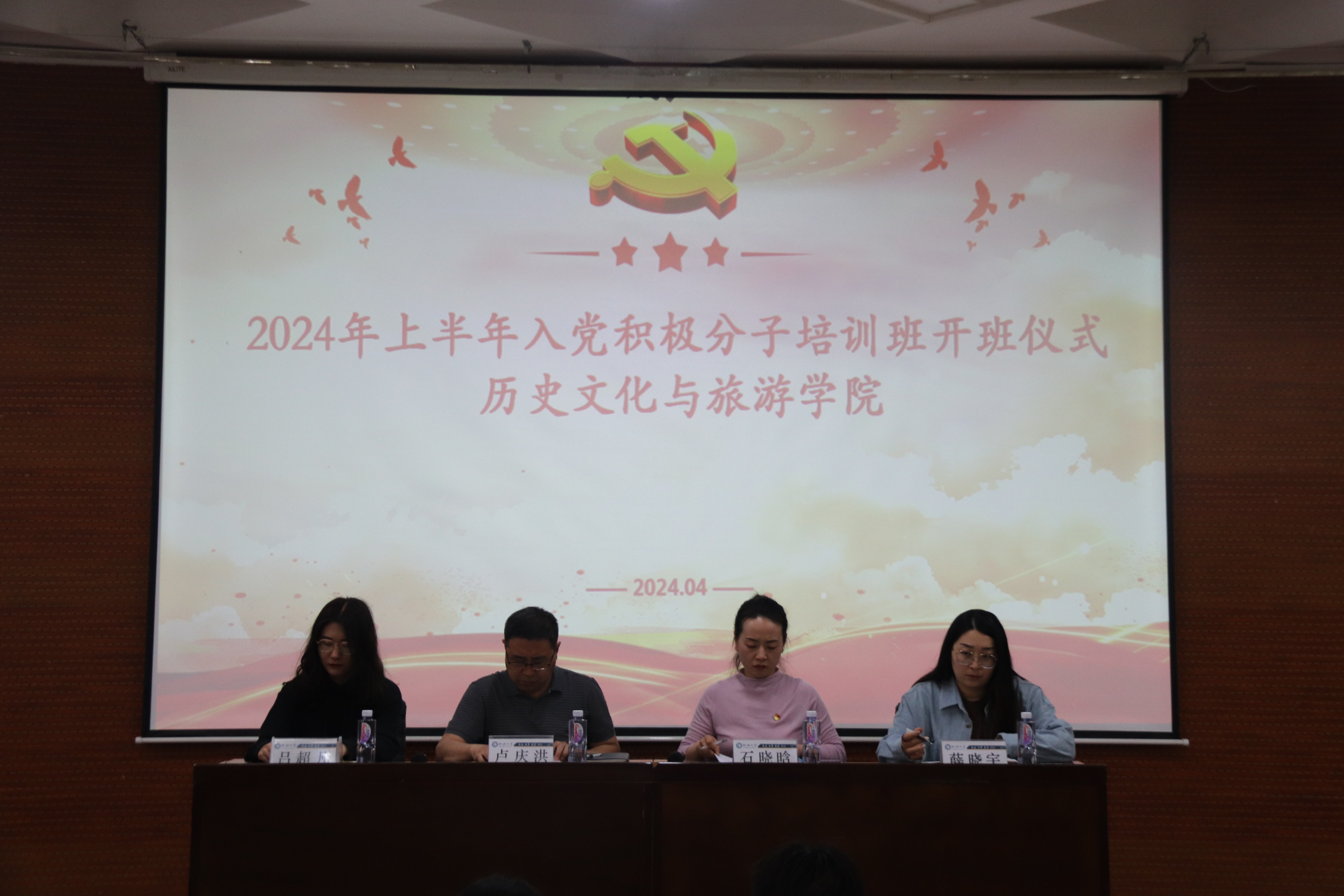 为贯彻落实全面从严治党新要求,严把党员发展“入口关”,提升党员发展工作质量,4月19日,历史文化与旅游学院于6#106报告厅举行2024年上半年入党积极分子培训班开班仪式。学院党委副书记、副院长卢庆洪,组织委员吕超凡,辅导员薛晓宇及全体入党积极分子参加,开班仪式由本科生党支部书记石晓晗主持。