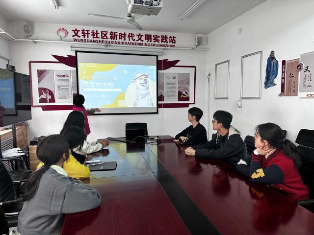 活动伊始,志愿者以养宠纪录片为导入,展现多个养宠家庭中主人与宠物的日常生活,为社区群众演示了文明养宠的正确方式。随后,志愿者借助PPT进一步为社区群众展示如何文明饲养宠物,并为社区群众讲解饲养宠物应秉持的心态以及可能会带来的问题和恰当的应对措施,呼吁社区群众在养宠前多加思考,端正心态,做到不弃养、不放养,引导社区群众更好地为社区文明饲养贡献力量。在讲解过程中,志愿者设计了相关问答环节,群众踊跃提问养宠相关事宜,志愿者详细且全面地解答了社区群众所提出的疑惑,现场氛围十分融洽。