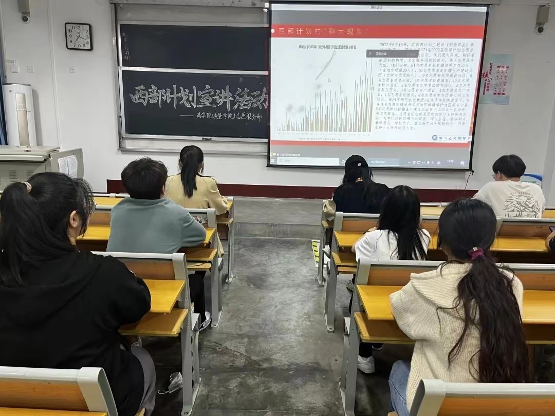 本次宣讲会采用线上线下相结合的形式,组织者首先带领同学们观看了西部计划招募宣传片,详细介绍了西部计划的相关政策,激发了同学们的参与热情。随后,服务于新疆维吾尔自治区克拉玛依市的西部计划志愿者周晓月,围绕西部计划的服务内容、政策支持、招募条件、报名流程等内容作了全面的介绍,使同学们对西部计划有了初步的认识与了解。同时,她讲述了自己在基层服务的挑战和收获,以及这段经历对个人成长和职业发展的影响,结合身边的众多事例对西部计划进行更深入的讲解,化抽象为生动,鼓励青年学子以优秀志愿者为榜样,深入基层、扎根基层,在西部这片广阔的大地上挥洒青春热血。活动结束之后,同学们纷纷表示,要充分弘扬志愿服务精神,以实际行动为国家的西部计划战略贡献青春和智慧。