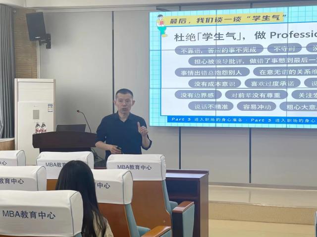 赵云新经理结合职场的动态变化以及学生的实际情况,从就业、考研、考公、留学等方向详细解读了同学们未来的发展方向,鼓励各位同学树立正确的择业观、就业观,科学做好选择;谈到生涯规划对于大学生的重要意义,赵经理呼吁在校学生摆正个人心态、锤炼自我情商、强壮身体素质,深刻认识自身的优缺点和单位的要求,以实际行动提高就业技能,实现个人价值与社会价值相统一。