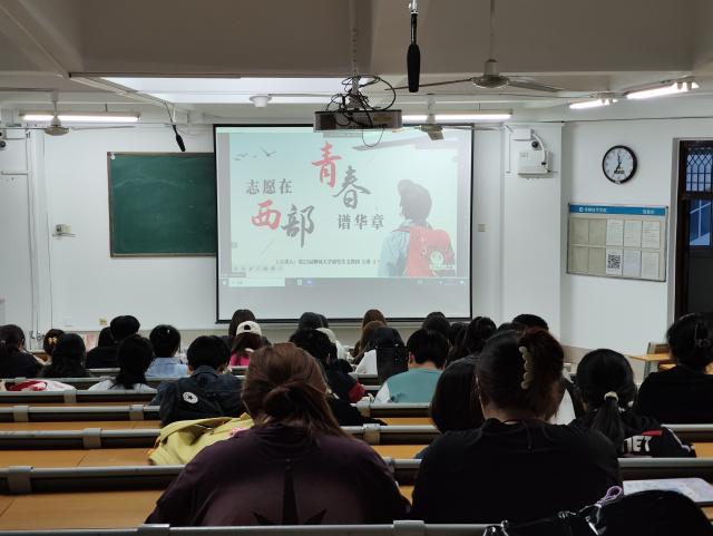 紧接着,王瑾又向同学们分享了她在新疆的服务经历,她表示这次支教经历是她人生中弥足珍贵的一笔,和孩子们在一起的日子让她感受到青春的无限延续和生命力的迸发。活动最后,王瑾给同学们播放了《到西部去》20周年纪念版主题MV,将志愿者们在新疆丰富多彩的支教经历展现在同学们眼前,让同学们对西部计划有了更深刻全面的认识。活动结束后,同学们纷纷表示通过此次宣讲欢动,让他们了解到西部计划的招募遴选、服务内容、待遇条件等相关政策,感悟到西部计划对西部地区经济社会发展的重要性,在未来他们也将积极投身于西部计划中,共同推动西部地区的进步发展,让志愿之花绽放在祖国最需要的地方。