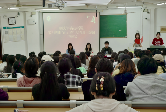 青马筑梦启新程,青春奋斗谱华章。随着庄严肃穆的国歌奏响,传媒技术学院第三十四期青马工程大学生骨干培训班开班仪式正式拉开帷幕。活动伊始,主持人李佳鑫简要介绍了本届青马工程的班主任、班级委员及班级成员的主要情况。随后,班主任刘妙祎围绕青马工程的培养目标与重要意义进行发言,她强调,“青马工程”的开展旨在培育更多服务人民、心怀集体、忠于国家的优秀青年,为全面建成社会主义现代化强国、实现中华民族伟大复兴的历史使命而不懈奋斗。接着,第三十四期青马工程负责人孟奕阳宣读倡议书,她呼吁当代青年要坚持理想信念,勇于担当责任,以奋斗为底色,努力成长为具有坚定的马克思主义信仰、德才兼备、全面发展的社会主义建设者和接班人。活动进行第四项,2023级广播电视编导十一班的侯晨晓作为学生代表进行发言,她表示,作为本届青马工程学员,我们将深入学习习近平新时代中国特色社会主义思想,把握发展大势,明确前进方向,不断提升自身综合实力,努力成为有理想、有担当、能吃苦、肯奋斗的优秀青年骨干,用青春在祖国和人民最需要的地方书写奋斗与奉献的人生华章。最后,伴随着整齐嘹亮的团歌,本次开班仪式圆满结束。