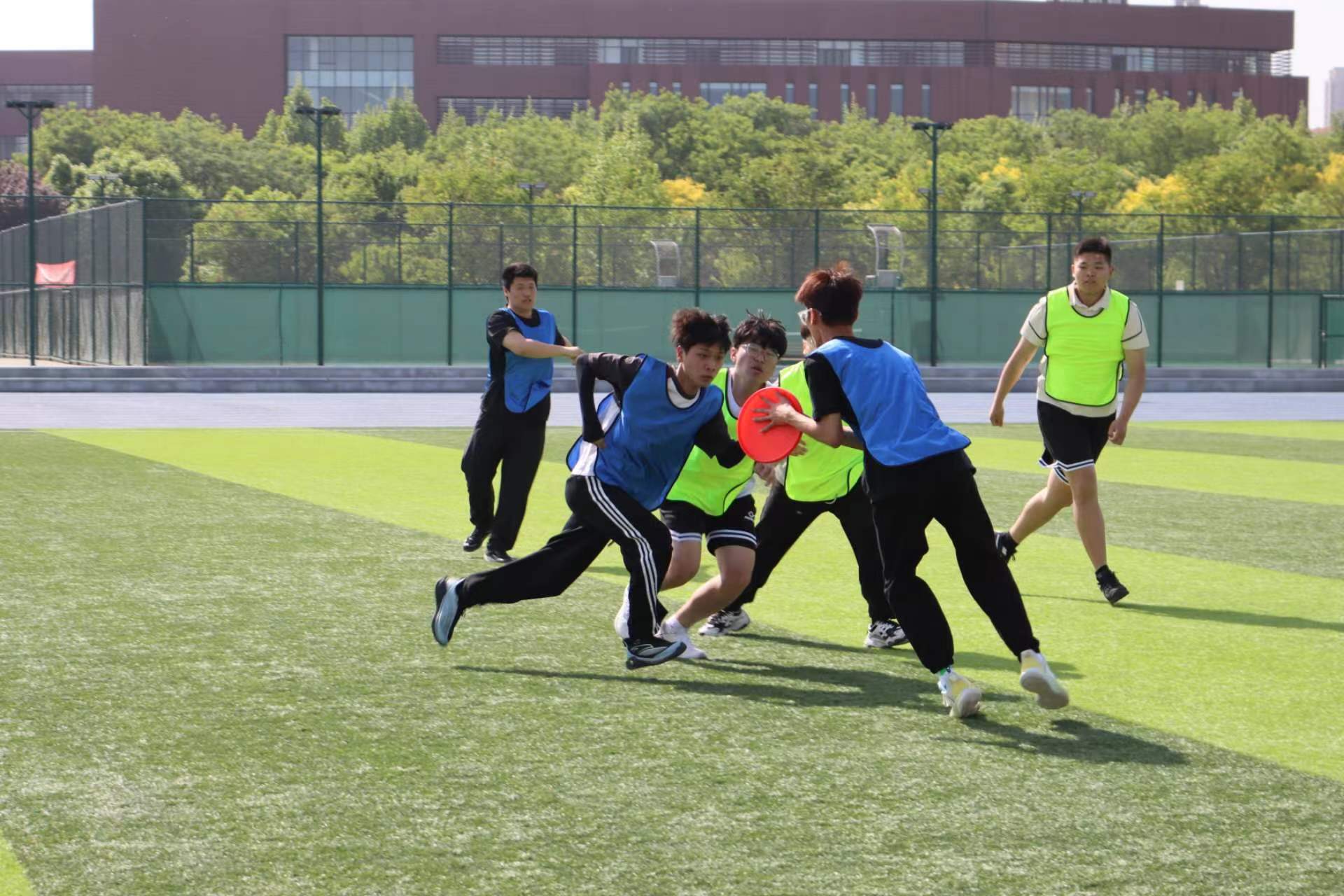 本次飞盘积分联赛以班级为单位,参赛选手涵盖各个年级的学生,共组建15支队伍,每支队伍在正式比赛开始前熟悉飞盘规则,积极训练,对比赛充满信心。裁判员介绍到参与飞盘运动需要用到跑,跳,投掷等基本的身体机能,使大家既可以锻炼到心肺功能,又能起到增强肌肉力量,塑造身形的目的。在飞盘比赛开始前,裁判员详细介绍比赛规则,确保比赛每阶段都严格按照既定规则公平顺利进行。与此同时,每支队伍的队长与各队队员协商战术,加油打气,做好充分的赛前准备。比赛正式开始后,15支队伍经过七场比赛的激烈角逐,八支队伍成功进入决赛。飞盘队员李健勇表示,通过此次比赛,使自己明白团队协作的重要性,同时能够进一步提高自己的飞盘技术水平和身体素质,增强自己的集体荣誉感,促进身心健康发展。