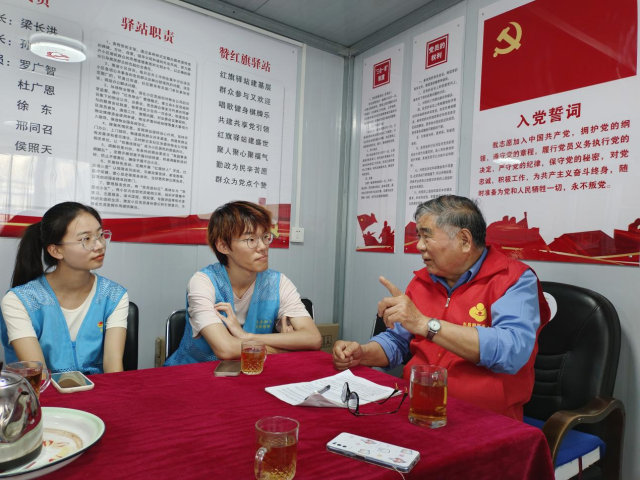 活动伊始,志愿者采访了扎根基层的红旗驿站党支老干部梁长洪。他于1963年入伍,1965年入党,曾在部队服役16年,2005年从东昌府区信访局退休,现任东昌府区柳园街道物资局居民网格党支部书记、红旗驿站站长,先后荣获第八届山东省道德模范提名奖、聊城市助人为乐道德模范、东昌府区优秀“五老”志愿者、“信义之星·桑榆”等称号。丰厚的人生阅历正是他坚定不移跟党走最好的见证。在采访过程中,志愿者与梁长洪书记面对面交流,他不仅讲述了早年艰苦朴素的军旅生活,还分享了他对雷锋精神与红色文化的理解与感悟,并号召当代青年大学生积极响应党的号召,认真提升个人本领,争取早日成为国家需要的人才。梁长洪书记强调,红色文化需要代代相传,青年要将个人的理想融入民族与国家的事业,投入到基层中去。活动结束,志愿者纷纷表达感悟,此次采访活动完满结束。