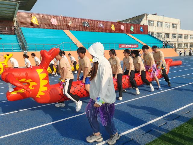 主持人讲解完比赛规则后,志愿者通过抽签分配好的顺序进行比赛。在“旱地龙舟”项目中,队员们骑坐在龙舟上,喊着口号,控制着龙舟的方向,双脚着地作“桨”快步向前。薛晓宇和尤姗姗在跑道内侧为同学们加油打气,历史文化与旅游学院队员动作协调一致,一鼓作气,冲向终点线。在“跳大绳”项目中,薛晓宇和尤姗姗为队员抡绳,老师们奋力摆动大臂,使长绳弧线圆滑、节奏稳定,跳绳的队员们全神贯注,跟随长绳的节拍上下跳跃,整齐有序。在“合力建塔”“鸿运通天”“超级NBA”等项目中,历史文化与旅游学院队员配合默契,取得了优异成绩。在阵阵喝彩和欢笑中,本次心理健康趣味运动会圆满落下帷幕。在老师与同学们的共同努力下,历史文化与旅游学院在此次嘉年华活动中取得三等奖的好成绩,展现了学院学子朝气蓬勃、奋勇拼搏、积极进取的精神风貌。