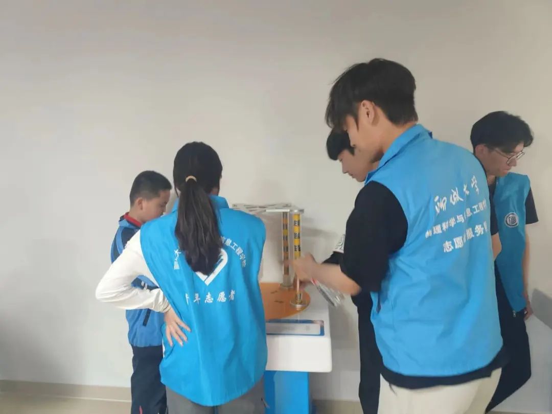 本次活动围绕科技展开,志愿者们结合生活实际,与小朋友们动手操作了王口社区内的一些简单易懂的物理模型,沉浸式体验了VR技术。活动过程中,志愿者生动形象地向小朋友们解释了模型的原理,将平面镜成像、声驻波等复杂问题变得通俗易懂,唤醒了他们对科学探索的热情。他们不时向小朋友们提出问题,锻炼他们的思维能力,面对志愿者们的提问,小朋友们争先恐后地发表自己的见解,志愿者们及时补充相关知识,让物理实验变得生动有趣,现场气氛十分活跃。
