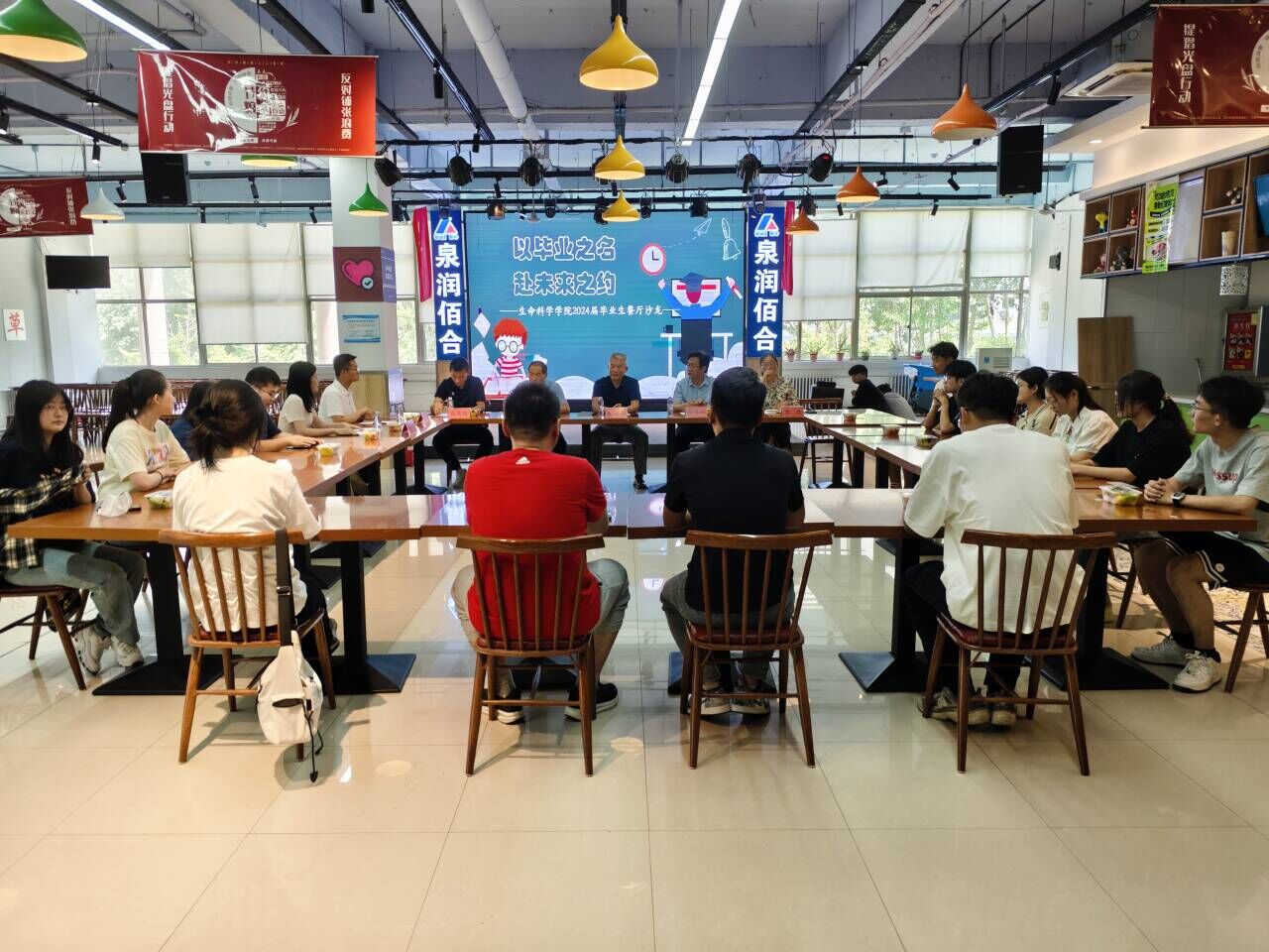 为更好倾听毕业生心声,与毕业生共话成长,加强对毕业生成长发展的关怀指导,5月16日,生命科学学院于东校区翰苑餐厅二楼举办“以毕业之名,赴未来之约”毕业生餐厅沙龙活动。生命科学学院党委书记张金保,院长贾泽峰,党委副书记、副院长李晓鹏,团委书记任庆超,辅导员李岩、朱兆阔、张昕以及13名毕业生代表参加本次活动。本次活动由李晓鹏担任主持人。