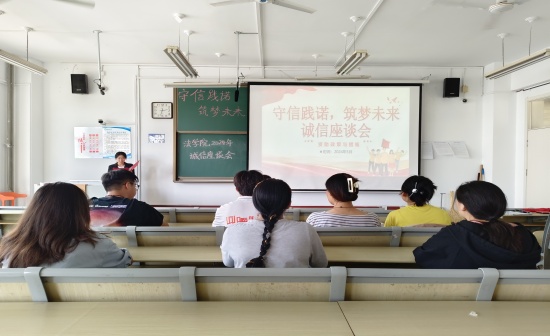 5月23日,法学院于西校区10#C520召开以“守信践诺,筑梦未来”为主题的2024年诚信座谈会,法学院教师郑阳阳出席此次座谈会,法学院2024届部分毕业生参加此次座谈会。