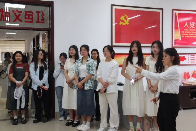 在讲解员张月英的引领下,青马学员们首先来到了红色文献展览展示区。张老师依托《马克思主义传播在中国——文献中的百年党建》和《忆初心 启新程——建党百年文献展》两大主题展览,以及中间展柜中陈列的报纸报道原版,为学员们生动描绘了中国共产党如何团结带领中国人民历经艰难困苦,从积贫积弱走向站立,再从站立迈向富足,最终实现从富足到强大的伟大历程。学员们认真观看展览,悉心聆听讲解,深切地感受到了党带领人民所取得的辉煌成就。随后,学员们移步至红色文献数字资源获取区,借助数字化的学习资源,更加直观地领略了红色文化的深厚底蕴与独特魅力。