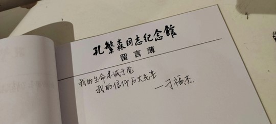 “年轻有为好干部,人民军队好战士”是对孔繁森同志真实有力的评价。活动开始,同学们在解说员的指挥下向孔繁森遗像庄严三鞠躬,以虔诚的姿态表达对前辈的怀念。在解说员的讲解中,党支部成员了解孔繁森短暂而辉煌的一生,他用自己的生命诠释对祖国深沉的热爱,用自己的力量捍卫祖国的尊严。馆内陈列着孔繁森同志的遗物,其中包括打补丁的衣服、勿告家人的遗书、随身携带的小药箱等等,每一件物品的背后都记载着他普通但又非凡的一生,党支部成员同每一件物品深情对视,眼神里充满对孔繁森同志的尊敬与怀念。孔繁森的一生正如他所说:“为了人民,为了党,上刀山入火海自己也在所不辞、心甘情愿。”活动最后,党支部成员们落笔抒情,将对孔繁森同志的敬佩书写在留言簿上。