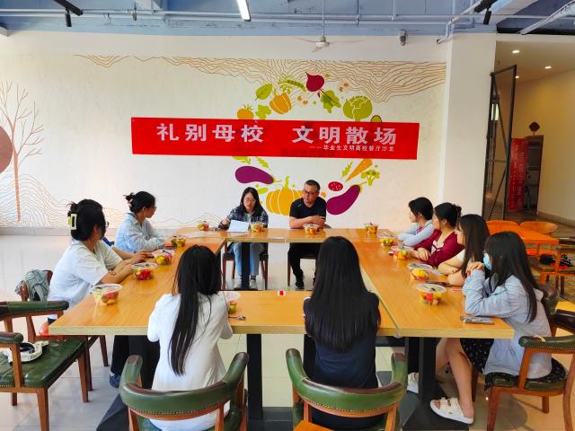 为了庆祝毕业生们顺利完成学业,加深毕业生对母校的眷恋,引导他们以文明有序的方式离开校园,5月28日,地理与环境学院于东校区翰苑餐厅二楼举办了“礼别母校 文明散场”餐厅沙龙活动,地理与环境学院党委副书记、副院长张福善,辅导员孙淑慧出席参加了本次活动。