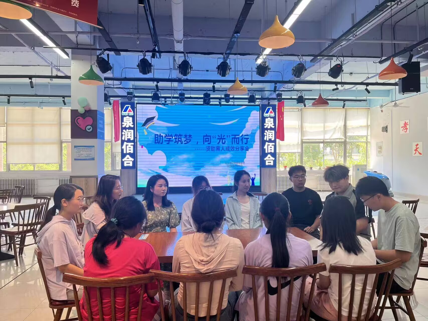 为进一步发挥资助育人实效,充分展现优秀榜样的示范和引领作用,5月30日,政治与公共管理学院于东校区翰苑餐厅开展“点燃希望,绽放未来”资助育人主题活动 ——国家励志奖学金分享交流会。政治与公共管理学院辅导员刘紫玮、徐盛楠,2023级优秀学生和部分学生代表参加活动。