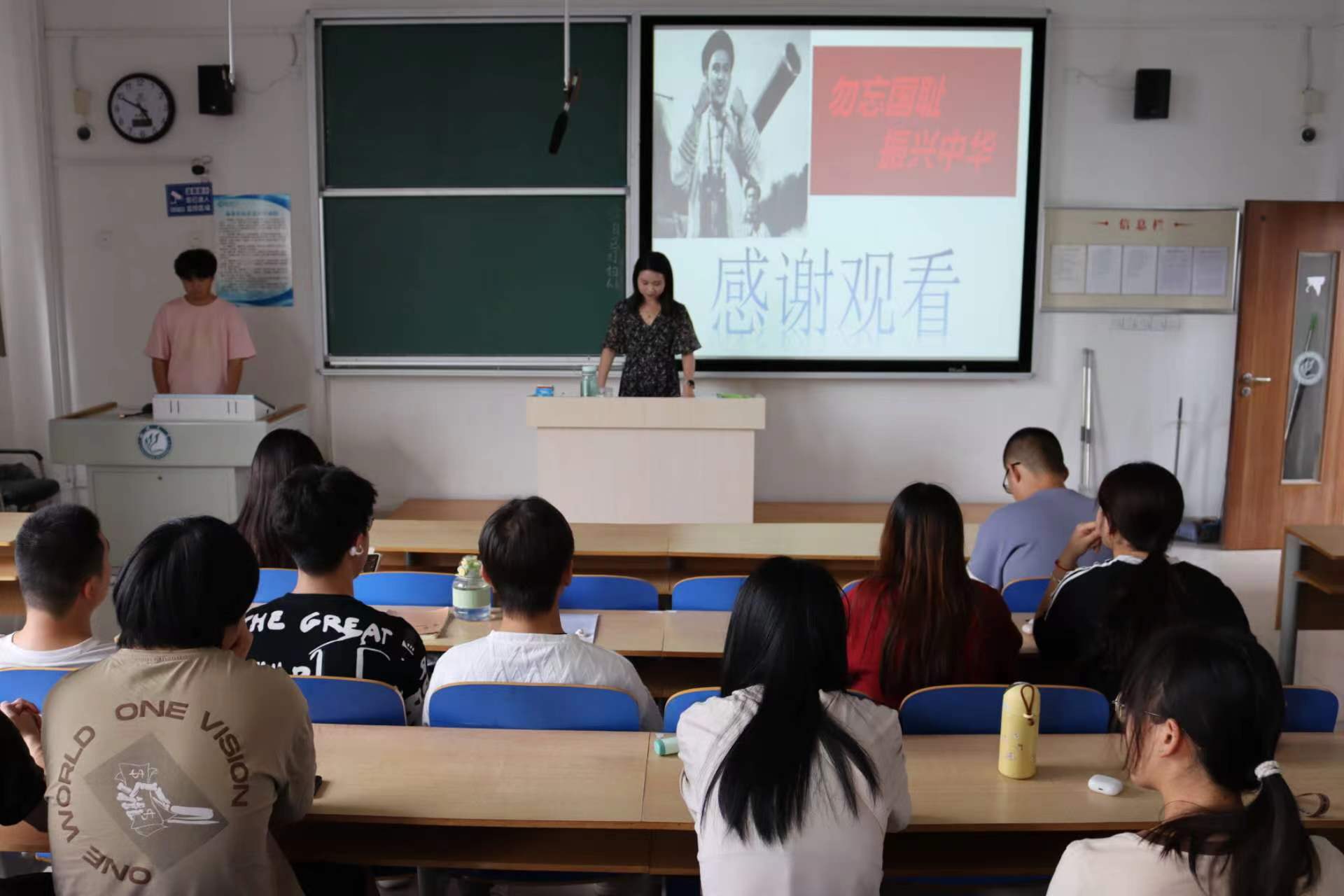 在影片播放前,刘紫玮老师从影片的背景、主要任务、抗战的过程以及观影意义等方面对影片进行了初步的解读,强调同学们要从影片中吸取历史教训,领悟爱国精神,同时建议同学们能够用心去感受,去铭记中国的这段历史。电影《甲午风云》围绕着甲午海战展开,展现了以邓世昌为代表的爱国将领和北洋水师官兵面对强敌,英勇抗击日本海军的壮烈场景。影片通过紧张激烈的战斗场面和生动鲜活的人物形象,深刻揭示了甲午战争的历史背景和深刻教训,同时也展现了中华民族不屈不挠、英勇顽强的民族精神。同学们在观看过程中,不仅能够感受到历史的厚重和沧桑,更能够被影片中的人物所感染,激发爱国热情,铭记历史,珍惜和平。观影过程中,同学们认真体会电影中的民族情怀和家国情怀。影片结束后,同学们纷纷表示现在的生活来之不易,我们要珍惜现在的美好生活,要牢记历史,勿忘国耻,砥砺前行,继承先烈遗志,振兴中华。