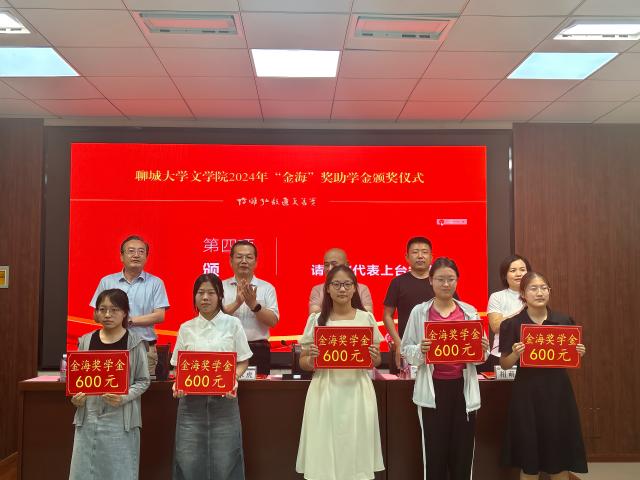 “金海”奖助学金由山东恒升纸制品有限公司董事长何金海先生于2021年设立,资助金额每年5万元,连续资助6年,主要用于奖励文学院考取名校研究生的毕业生、成绩优异的非毕业生和资助品学兼优的贫困生。此次金海奖助学金颁奖仪式不仅表现出山东恒升纸制品有限公司对教育事业的支持和关注,也体现企业对于人才培养和社会发展的责任感,同时展现文学院对优秀学子的重视与培养。在荣誉的激励下,广大学子将携手共进、勇攀高峰,继续发扬“崇教、尚学、敦厚、奋进”的聊大精神,取得更高成就。
