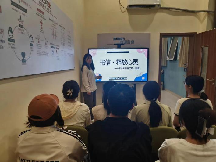 主讲人王新慧准备好彩色书信纸,在活动开始后,播放视频展示书写对情绪表达的重要性,强调书信是释放心灵的排解情绪方式之一。王新慧简要介绍本次的活动主题,接着通过“日常常见的情绪表达”、“排解情绪的语句”、“书信排解情绪的方式以及作用”三个方面进行详细讲述。活动过程中,王新慧积极与同学们进行互动交流,对同学们的日常心理进行了解,通过讲解经典案例展现书信在日常生活中对心灵释放的作用,调动同学们的活动积极性。在书写书信环节中,同学们根据自己的喜好选取不同样式的信纸,在认真思考后书写内心的烦恼与对未来的期待,并在书写结束后投入信箱。在分享交流环节,同学们轮流交流并积极分享各自对此次活动的感言。参与者高文硕表示,通过参加此次活动了解到书信写作在心理健康方面有重要作用,在提高对心理健康重视程度的同时,也加深自身对心理健康的认识。