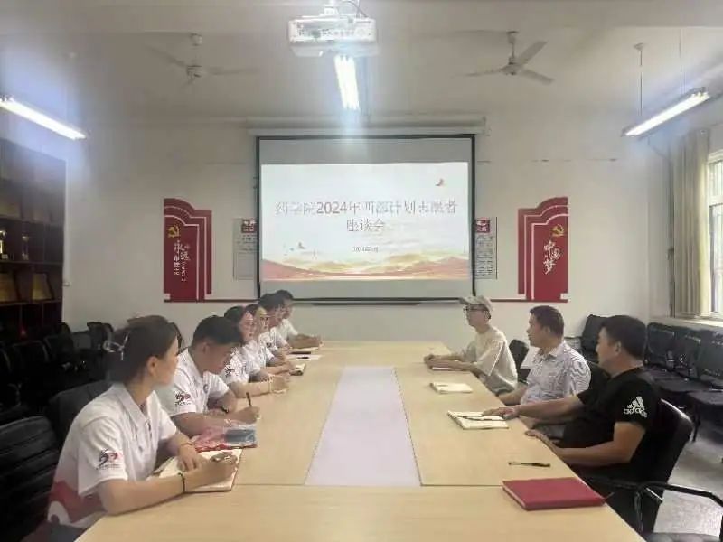 6月15日下午,药学院于聊城大学东校区2#109举办“青春志愿,爱在西部”西部计划座谈会。药学院党委书记程波、党委副书记、副院长李永新、团委书记郑嘉会、辅导员徐致远、2024年西部计划志愿者共同参与此次活动。