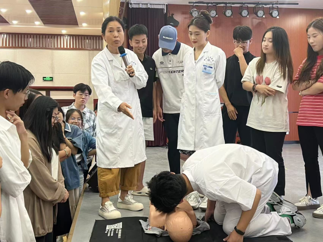为确保2024下半年援疆实习支教工作的顺利进行,保障援疆实习支教同学的生命安全,8月29日下午,聊城大学医学院“医”心向阳志愿服务队于青年之家向2024年秋季援疆实习支教同学进行了一系列主题培训,校医院张秀春、王丽静、席萌萌、孙文辉担任培训老师,“医”心向阳服务队向参与支教的同学们演示心肺复苏,海姆立克和气道异物阻塞的处理方法。
