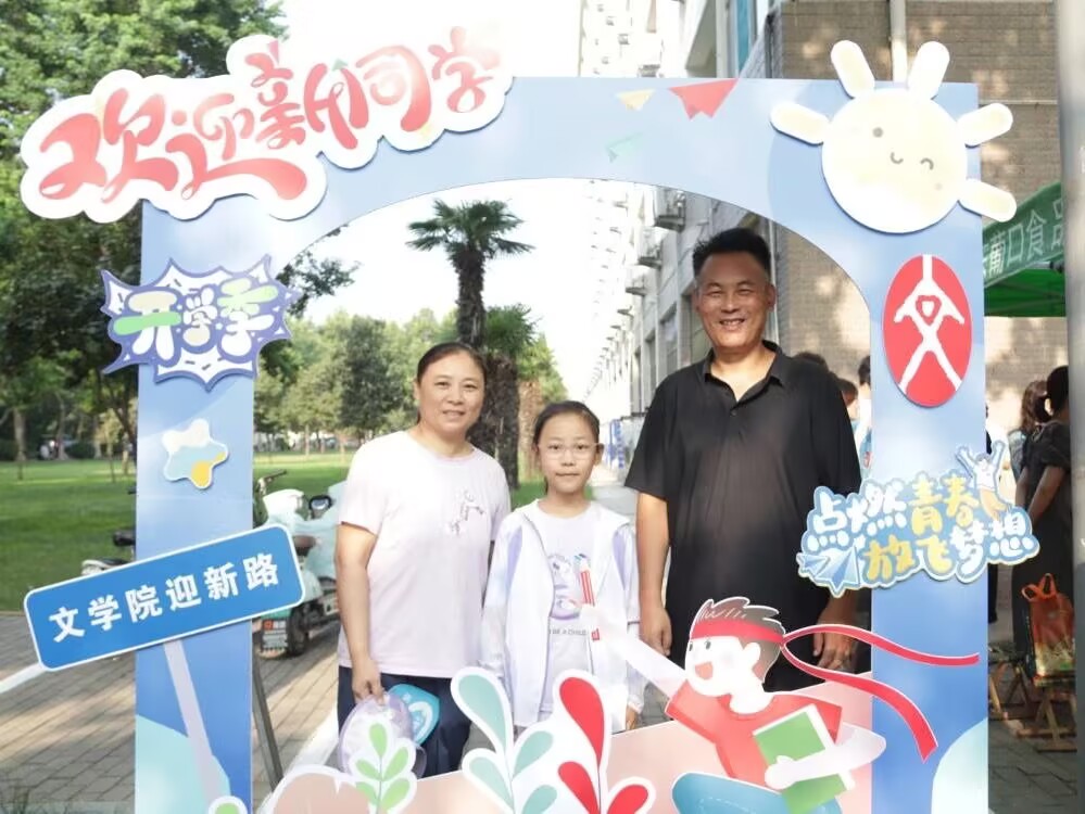 桃李相逢,蓄能秋实。和父亲成为校友是什么感受?迎新现场,新生与曾在聊大学习生活过的父亲同游校园。“从我上小学开始,父亲就一直和我讲聊大,从那时起,我就萌生了将来要上聊大的想法。”岁月流转,两代人的故事在聊城大学文学院续写,是妙不可言的缘分,更是聊大精神的传承。“和孩子一起再次走进聊大校园,扑面而来的就是深厚的文化底蕴,我一直以聊大为荣,希望他在这里努力学习,成为社会栋梁。今年正好是聊城大学建校五十周年,祝愿母校生日快乐!”新生及家长一同在文学院迎新点旁的考博、考研、考公、西部计划展板前驻足,感受榜样力量,坚定奋斗目标,对学院的信任感油然而生。辅导员王伟伟与新生近距离沟通,亲切问候新生家长,她从近年来学院发展情况、取得的成就等方面展开详细介绍,针对学生评奖评优、入团入党等问题给予细致解答。“您放心吧,到了这里就都是我们自己家的孩子。”家长脸上难掩笑意,紧紧握住老师的手,“交给你,我放心!”师生家长同话美好愿景,共待圆梦之时。