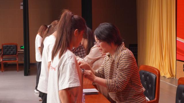 典礼上,李承虎为新生班主任们颁发聘书,对他们的辛勤付出给予肯定。在庄重的氛围中,教师们为新生代表佩戴校徽,意味着2024级全体新生正式成为文学院大家庭的一员。院长卢军在致辞中对新生寄予厚望,她鼓励他们要珍惜大学宝贵时光,勤奋学习,不懈努力,不断超越,以遇见更好的自己。她的言语中充满对新生的期待和祝福,希望他们能够在这里茁壮成长,成为未来的栋梁之材。最后,全体师生齐唱校歌《飞向美好的明天》。在激昂而振奋的旋律中,文学院2024级新生见面会圆满落幕。