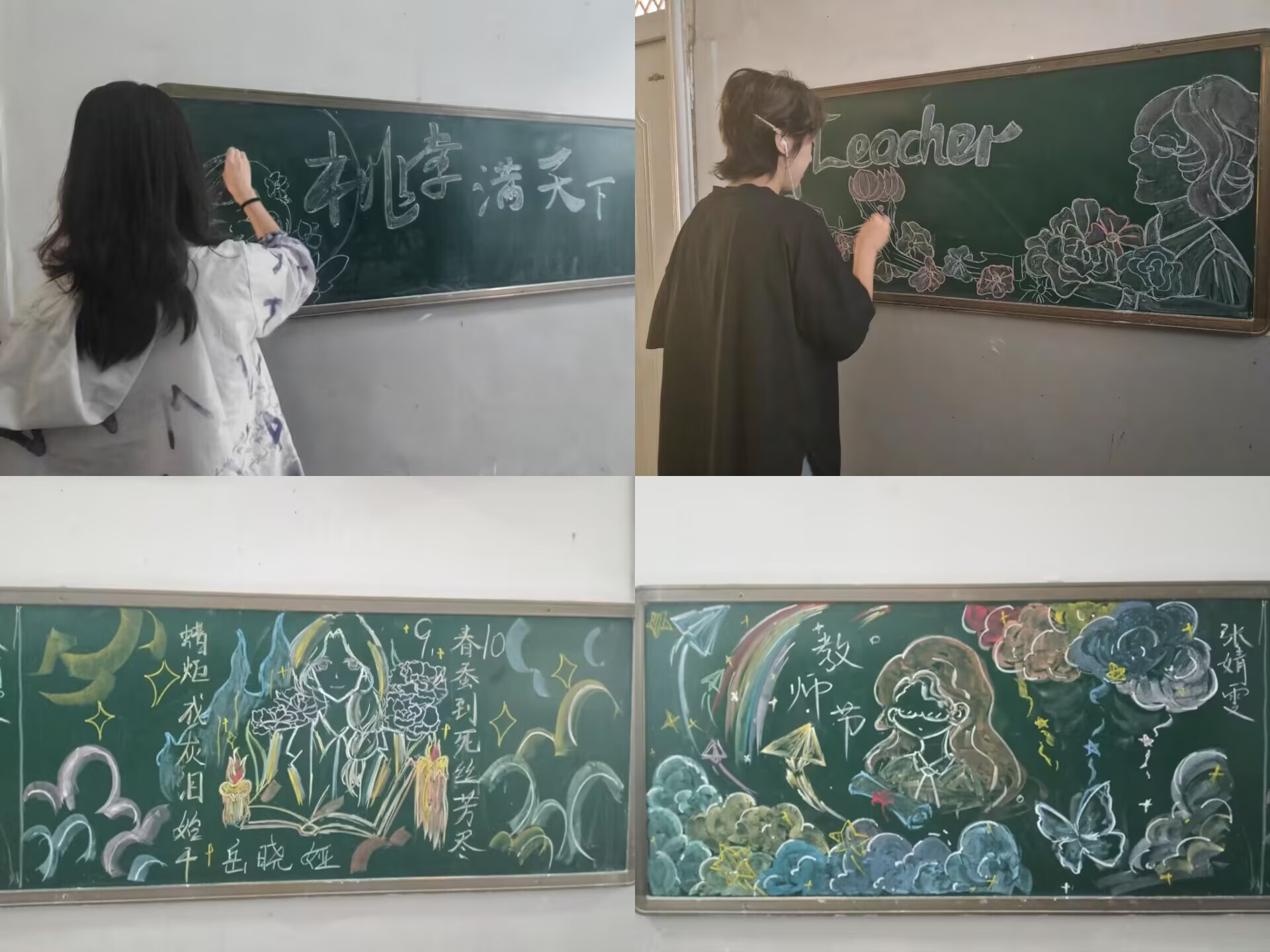为庆祝我国第40个教师节,弘扬尊师重道的传统美德,表达对教师的深切敬意与感激之情。9月7日,教育科学学院于4号楼A区举办“‘师’情‘画’意”教师节主题黑板报设计活动。