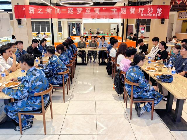 9月14日,商学院(质量学院)“心之所向 逐梦至商”餐厅沙龙活动在东校区博苑餐厅三楼举办,学院辅导员韩亭亭、施安琪、刘聪睿及26名新生代表共聚一堂,畅聊分享入学以来的所思所感,感受中秋与军训交织下的独特情怀。