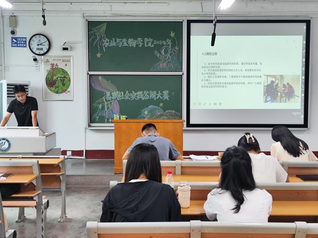 为展示学生的暑期社会实践成果,总结社会实践中获得的经验与教训,同时锻炼学生的表达能力和团队协作能力,9月20日,农业与生物学院于东校区2号教学楼416举办2024年暑期社会实践答辩大赛,农业与生物学院团委副书记任庆超、辅导员管玉静担任本次社会实践答辩大赛评委。