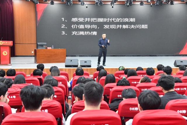 讲座伊始,金澄首先以比尔·盖茨、马化腾等著名程序员的成功案例为切入点,深入剖析了他们在不同时代背景下取得成功的关键因素:敏锐把握时代背景、始终坚持正确价值导向并善于发现和解决问题,以及对事业的无限热情。随后,他详细阐述了“数据与智能构建信用体系”的前瞻理念,通过海尔灯塔工厂的智能化转型与智能驾驶、车路协同技术案例,生动展示了技术革新重塑行业生态,强化社会基础的过程。而在谈到思维模式时,金澄强调了培养多元思维模式的重要性,鼓励同学们要勇于打破常规束缚,积极探索未知领域,不断激发自身的创新潜能。最后,金澄向同学们提出了宝贵的学习建议:一是要注重实践,通过解决实际问题来提升自己的能力:二是要培养创新思维,不断挑战自我,勇于尝试新事物。讲座结束后,同学们纷纷表示,此次讲座不仅拓宽了他们的视野,更激发了他们创新创业就业的热情与激情。他们承诺将把学到的知识和经验运用到实践中,努力提升自己的创新创业就业能力。