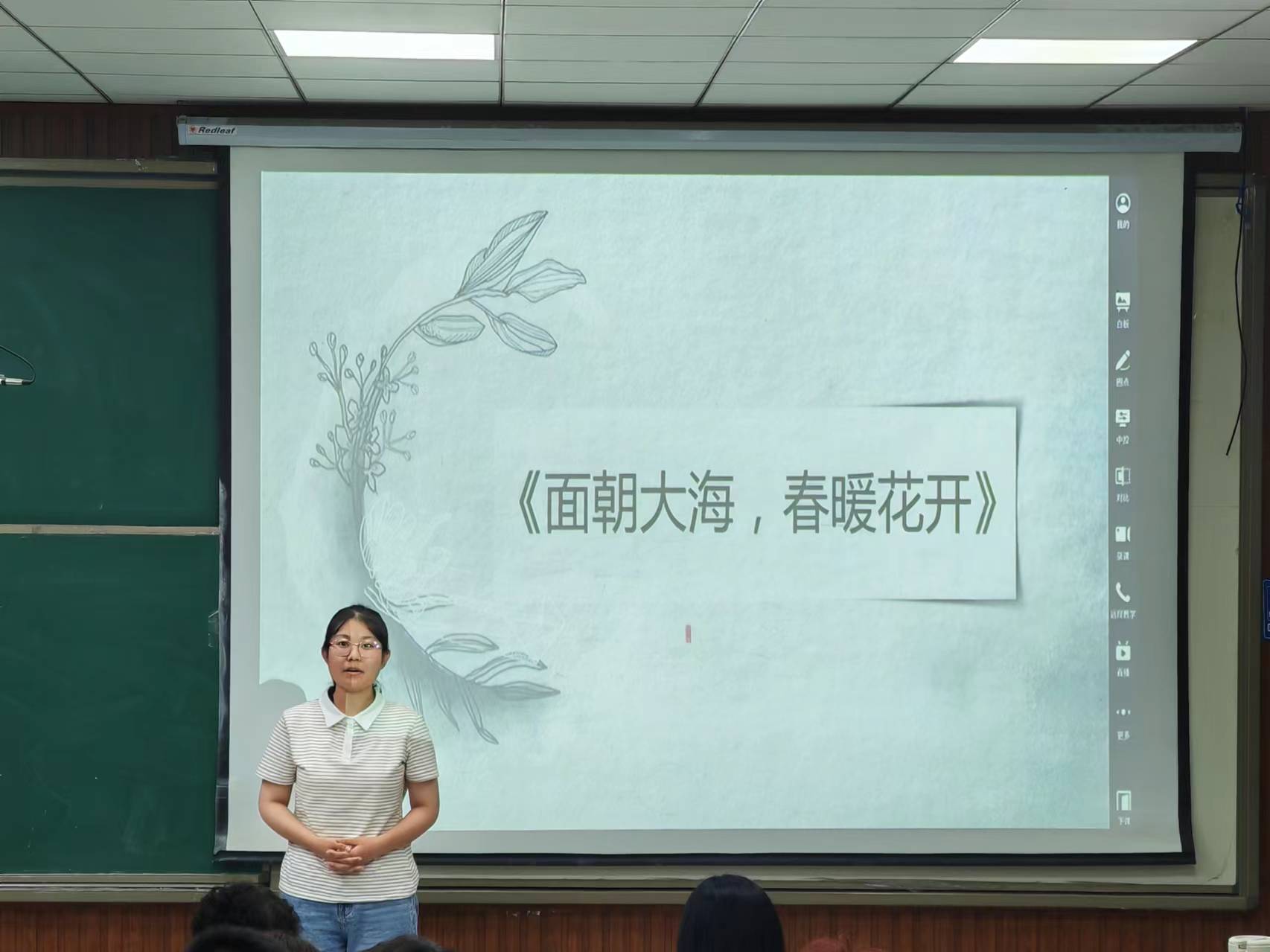 同学们展示完毕后,孙浩然同学分享自己在实习支教期间,如何将吟诵这一独特的艺术形式巧妙融入课堂的宝贵经历。他的尝试不仅是教学方法的革新,更是文化传承的生动实践。他通过吟诵这一载体,让孩子们在朗朗上口的韵律中,感受到传统文化的魅力,从而加深对民族文化的认同感和自豪感。这一举措不仅得到孩子们的热烈响应和喜爱,还赢得学校老师以及省教育厅的高度肯定与赞扬。