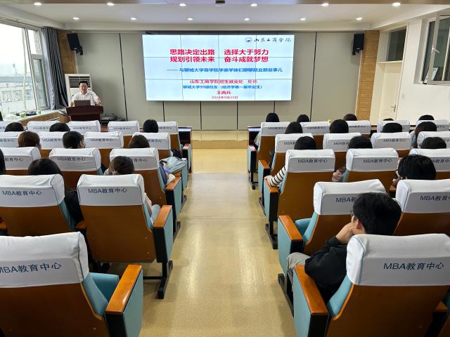 9月26日,在全校上下庆祝建校50周年的喜庆氛围中,商学院(质量学院)特邀99级优秀校友、山东工商学院招生就业处处长王西兵回校作大学生就业专题报告,学院2022级和2023级学生代表参加了报告会。