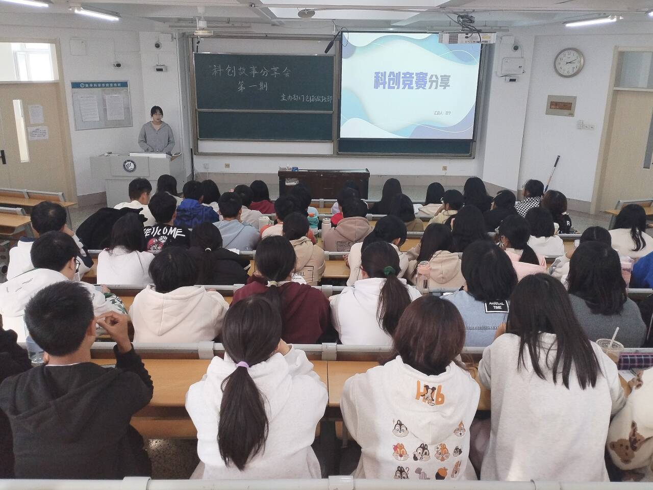 为加强学生对科创赛事的认识,提高创新精神和创业能力,10月24日,数学科学学院于11号教学楼A204开展“科创故事分享会•第一期”活动,商学院智视引领者-禁视系统(R&B)助力中小型机械企业数字化转型项目成员夏宁以及数学科学学院智能化的多档传动与控制系统项目负责人何芃主讲,2023级、2024级部分学生参加。