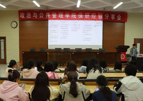 为让大学生更全面地了解保研形势与政策变化,促进学术交流与资源共享,10月24日,政治与公共管理学院于东校区6#C106举办保研经验分享会。会议特邀政治与公共管理学院2021级优秀学生付春燕、曾宪辉、刘佳豪分享经验和心得,帮助同学们拨开迷雾,明确方向。