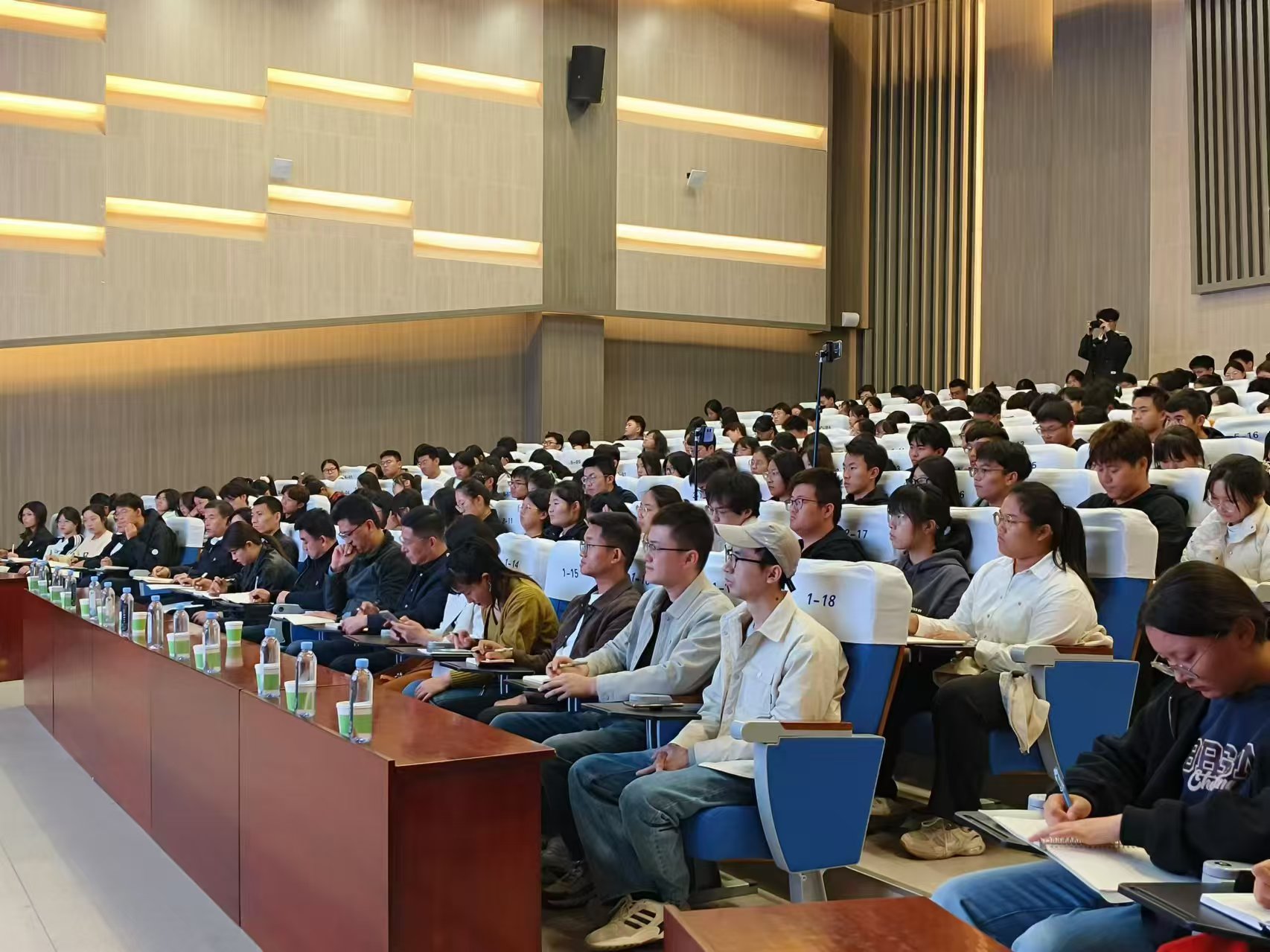 本次思政课采用现场讲授和线上同步直播形式进行,三个学院辅导员、学生党员、入党积极分子以及青年学生共计1600余人同上一堂思政课。