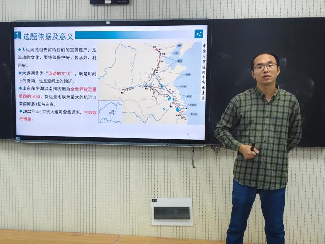 吴金甲首先讲述了大运河从隋唐时期因隋炀帝开凿而开始兴起,到明清时期因经济发展凸显漕运地位,日渐繁荣的辉煌历程;再到后来因为黄河改道而造成运河梗阻,逐渐衰落的曲折过程。在讲述中,同学们知晓了传统漕运没落的原因以及大运河在过去、现在以及未来所具有的巨大经济价值和生态价值。