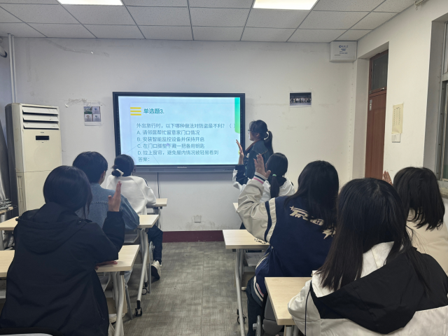 宣讲结束后,社区工作人员还组织了安全知识趣味答题环节,详细介绍了本次知识竞赛的题目内容、参与时间、参与方式等注意事项。在紧张刺激的答题过程中,同学们全神贯注地查看竞赛题目,凭借丰富的知识储备和对安全知识的灵活运用,积极参与答题。同时,社区工作人员耐心解答同学们在答题过程中遇到的疑问与困惑,进一步巩固了大家对安全知识的掌握。答题结束后,同学们纷纷表示收获颇丰,不仅提高了安全意识和自我保护意识,还锻炼了思维能力和应变能力。这次活动为构建安全和谐的校园环境贡献了一份力量。