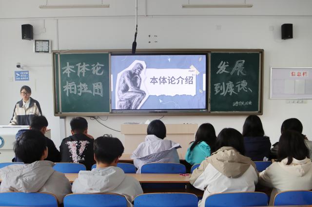 主讲人靳双宁结合本体论的基本概念,系统讲解本体论的发展历程,包括泰勒斯的“万物源于水”思想、柏拉图的理念论以及亚里士多德的实体论等古代哲学观点,指出本体论具有多元性、秩序性等特点。靳双宁与同学们分享了哲学家对世界本质的探讨,在奠定哲学基础,激发现代人对于存在意义的思考等方面具有重要意义。靳双宁还对近现代哲学中的心物二元论、康德的先验本体论及存在主义等进行介绍,分析萨特、加缪等哲学家关于个体自由与荒诞的见解,引导同学们对人性、自我价值以及社会责任等问题进行深入的思考和探讨。在交流互动环节,靳双宁鼓励同学们积极表达自己对哲学的认识和看法,呼吁同学们以哲学家们为榜样,学习他们身上的探索精神。参与者李梦怡表示,哲学不仅仅是思辨的工具,更是帮助人们探讨生命意义的智慧结晶,我们要理解领悟哲学的内在,将实践与理论结合,充分发扬哲学精神。