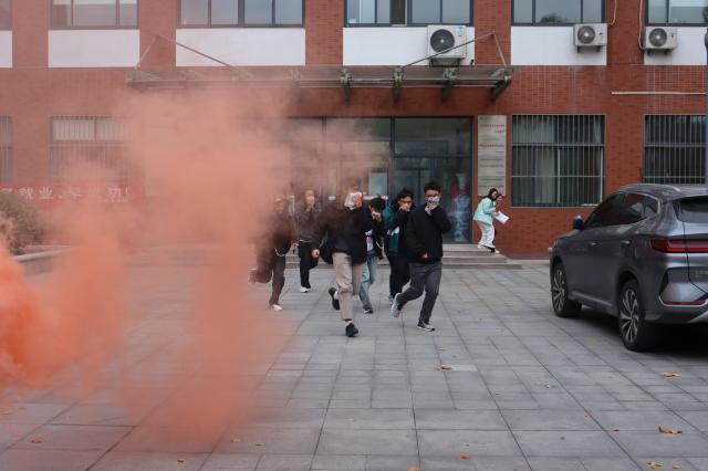 负责人牛永琪拉响警报,参与者在志愿者的指引下捂住口鼻,弯着身体,按照既定的逃生路线快速有序地撤离到指定位置。志愿者们在楼道内引导疏散,确保学生安全。参与者冷静沉着,相互协作,快速而有序地向马克思主义广场疏散。抵达广场后,各班班长迅速清点人数并向总指挥报告。整个过程紧张有序,仅用时 5 分钟全部学生安全撤离。牛永琪向参与者演示灭火器、消防栓等消防器材的正确使用方法,并邀请部分学生亲自参与操作体验,提高了参与者的实际操作能力,让参与者更直观地掌握消防技能。牛永琪阐述消防安全的重要性,通过此次消防逃生演练,参与者可以更好地将理论付诸实践,提高参与者的消防意识和防灾减灾技能。参与者孙心想表示,我们要有居安思危,防患于未然的安全意识,在发生突发事件时,要沉着冷静,迅速采取应对措施,实现安全逃生。
