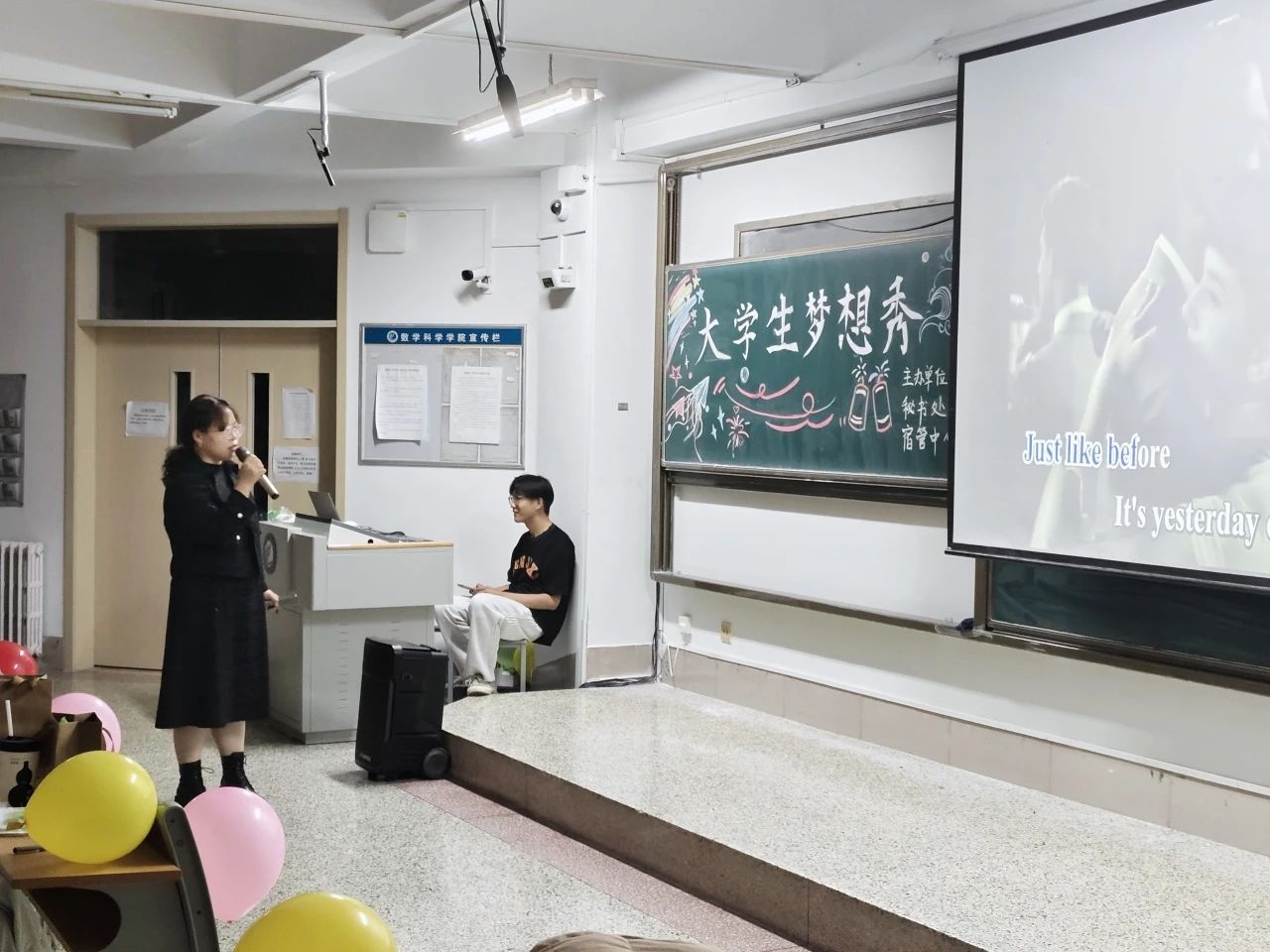 为展示新生青春风采,丰富校园文化生活,11月16日,数学科学学院于11号教学楼A204教室举办“大学生梦想秀”活动,辅导员张琦老师参加,2023级、2024级部分同学参加。