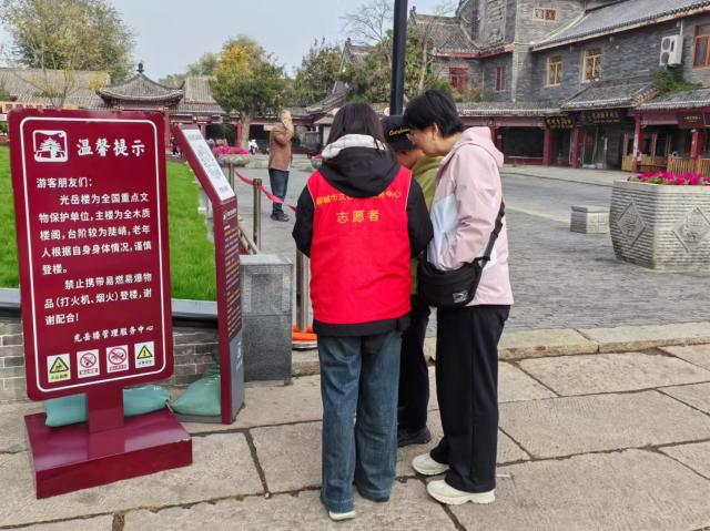 此次活动不仅为游客提供了便利,增强了其对光岳楼及古城文化的了解和认识,而且有利于弘扬志愿服务精神,推动古城文旅事业的繁荣发展,为历史文化的保护与传承贡献力量。
