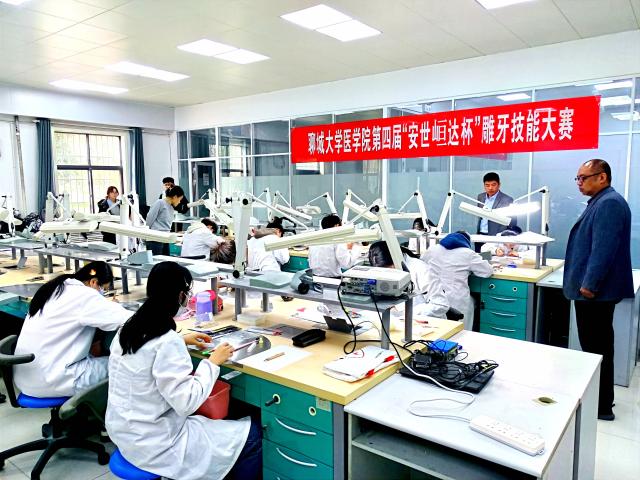 为提升同学们的专业技能与实践操作能力,培养更多高素质口腔修复工艺技术人才,11月24日,医学院举办第四届“安世峘达杯”雕牙技能大赛决赛,聊城市人民医院口腔科主任、主任医师刘琨,北京安世峘达科技有限公司运营副总经理毕磊,技术工程师白牡丹,业务总监李景志,山东康齿乐医疗科技有限公司高级技师、技术总监、质量部负责人段增杰,高级技师、医疗质检部经理、医疗业务部总监、数字化椅旁部经理孙慧,医学院党委书记明辉,党委副书记、副院长王炜明及口腔医学技术专业相关教师出席,口腔医学技术专业2022、2023、2024级本科学生参加。