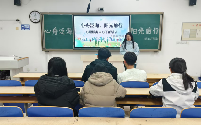 为了提升心理服务中心成员的专业素养与工作能力,强化学院心理健康工作基层力量,11月30日,马克思主义学院于东校区6#201举办“心舟泛海,阳光前行”心理服务中心干部培训活动,心理服务中心部长唐正婧担任主讲人。