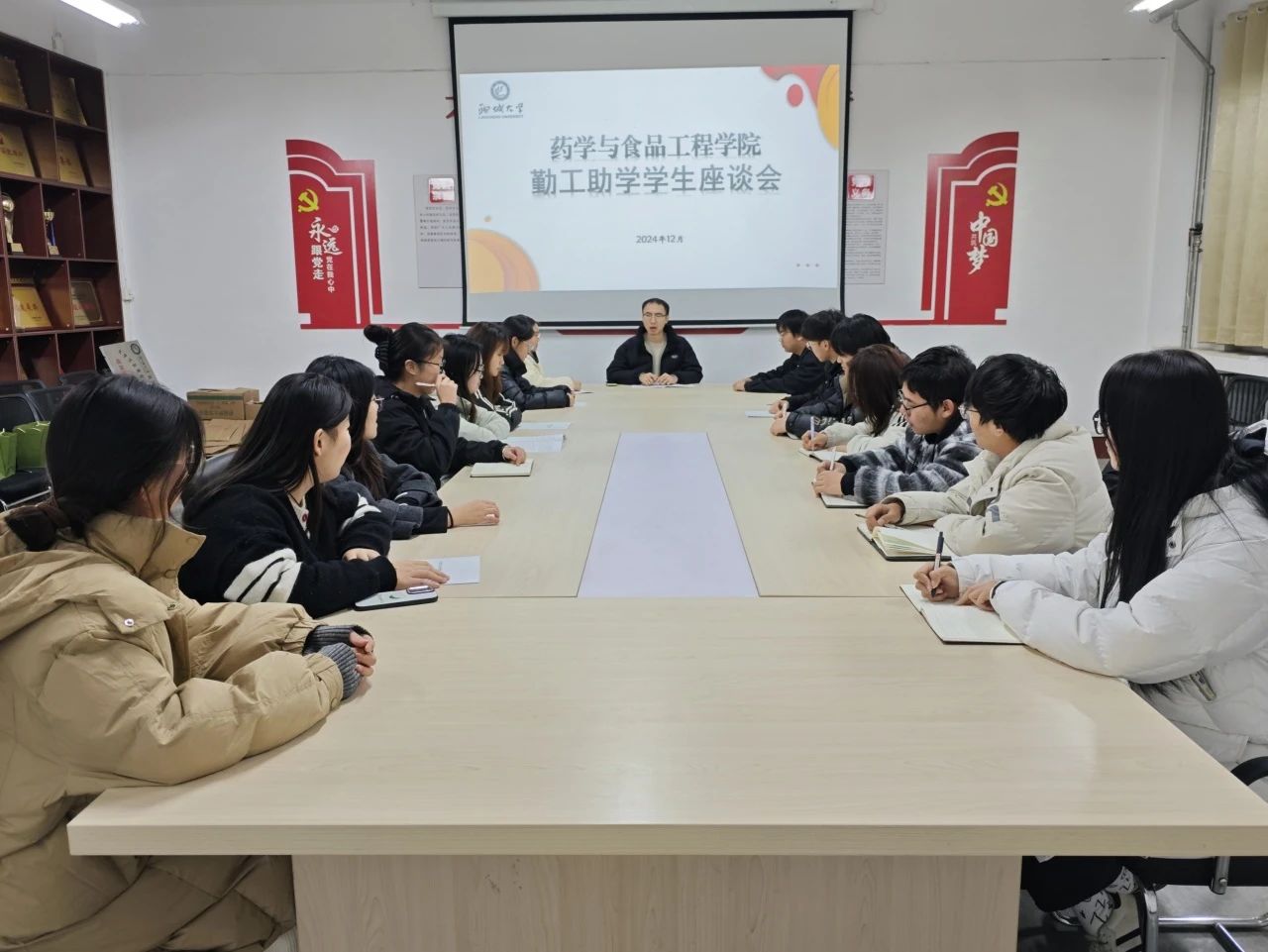 为充分了解我院勤工助学工作的开展状况,发挥勤工助学在劳动实践中的育人功能,12月2日,药学与食品工程学院于聊城大学东校区2#109召开勤工助学学生座谈会,本次座谈会由辅导员徐致远主持。
