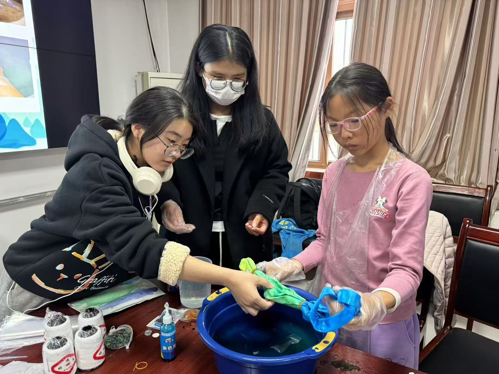 为弘扬中华优秀传统文化,让社区儿童近距离感受非物质文化遗产的独特魅力,12月3日,计算机学院24级3、4班团支部走进聊城市昌华社区,举办“扎染知识进社区,幸福由染而生”社区实践活动。