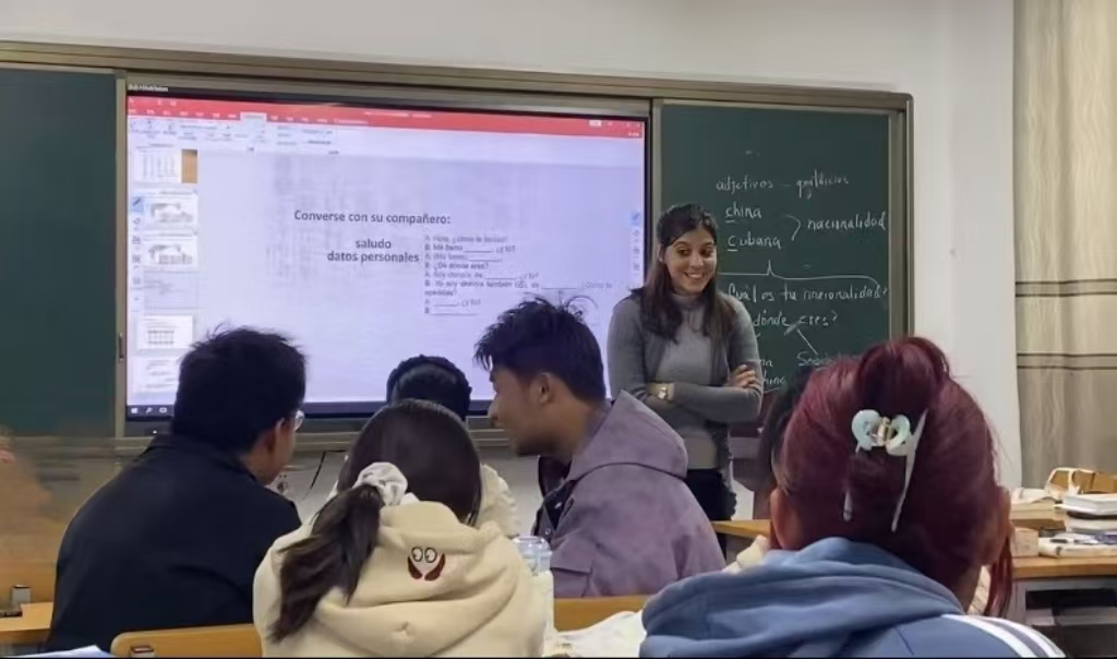 在大一的西语角活动中,同学们在外教Sandra的指导下,进行了口语练习。Sandra老师通过课堂展示与录制视频的方式,激发了同学们的表达欲,如此,有益于对西班牙语的口语表达,从而打破“哑巴语言”的传统方式。
