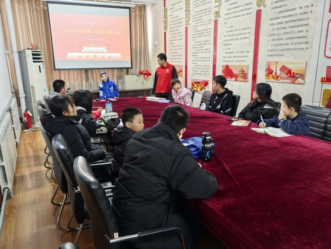 活动伊始,在志愿者的安排下,小朋友们有序入座,观看沂蒙英雄“沂蒙母亲”张淑贞的英勇事迹。视频中,有关张淑贞老前辈的一个又一个感人故事在小朋友们眼前缓缓展开,他们仿佛穿越时空,亲眼目睹了张淑贞老前辈为了国家和民族,无私奉献、浴血奋战的壮烈场景。小朋友们神情各异,有的眉头紧锁,有的低头深思,他们专注的眼神里,充满了对英雄的敬仰与对历史的好奇。随后,志愿者们与小朋友进行互动,鼓励小朋友们畅所欲言,发表自己的独特见解。思想的火花在交流中不断碰撞,气氛随之达到了高潮。沂蒙英雄的事迹激发了小朋友们强烈的爱国情感和民族自豪感,也让他们深刻体会到了前辈们的艰苦奋斗精神和幸福生活的来之不易。他们积极举手、大声发言,表示自己以后会勤奋学习,以英雄们为榜样,像英雄们一样勇敢坚强,将来为祖国贡献自己的力量。