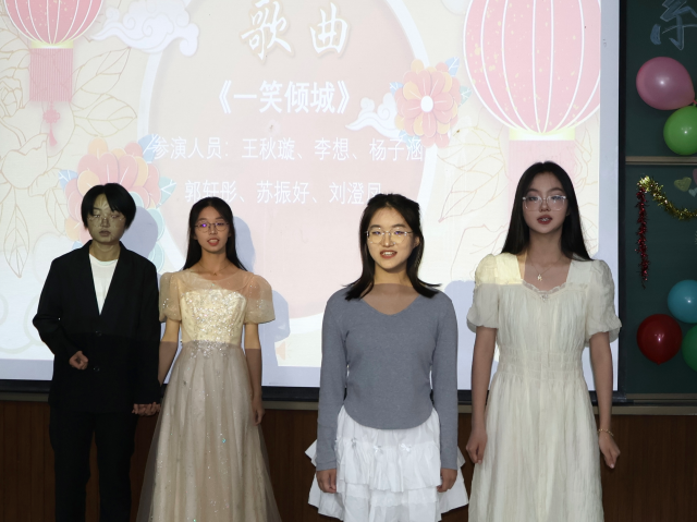 晚会伊始,主持人致以亲切问候,希望学生享受晚会美好时光,宣布晚会正式开始。刘军科、徐阳晨等人的开场舞《快乐崇拜》拉开晚会帷幕,动作整齐,激情澎湃,他们用活力四射的舞步点燃全场,以饱满热情向众人展现青春魅力。宋荪墨涵等同学沉浸演绎影视经典《甄嬛传》,巧妙翻拍片段“滴血验亲”,演员们的表演精彩投入,语言包袱幽默风趣,众人不禁开怀大笑,拍手叫好,现场氛围高涨。古典韵味,情意绵绵,李文正琴艺精湛,沉醉独奏一曲《知否》,乐音悠扬婉转,极具穿透力与感染力,动情的音符如潺潺流水,瞬间将众人带进纯净美好的诗意世界。臧泽鑫、相路广等同学合唱《我还有点小糊涂》,曲调轻松活泼,“青草香,浆果甜”熟悉的旋律勾勒着惬意的童年画卷,引起众人对童年时光的回忆与怀念,激励学生保持纯粹,勇往直前。歌舞之余,穿插的游戏环节为现场增添更多欢乐,“方言传话”和“抢凳子”小游戏使现场更加热闹非凡,观众积极参与,欢笑声此起彼伏。最后,众人真情合唱《骄傲的少年》,心中激荡起对彼此的祝愿与对未来的企盼,晚会在歌曲带来的热血与感动中画上圆满的句号。