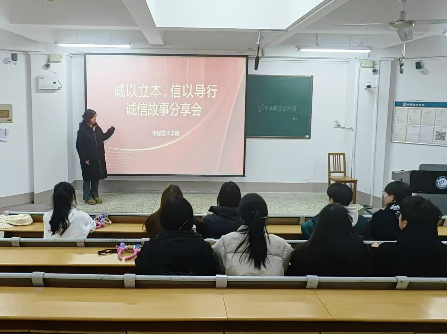 为深入贯彻落实诚信教育,弘扬中华民族传统美德,进一步增强学生的诚信意识,12月9日,传媒技术学院于11#C404举办了“信以致远,诚以载道”诚信故事分享会。勤工助学中心王善交担任主持人,传媒技术学院部分学生参与了此次活动。