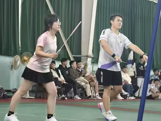 比赛过程中,外国语学院羽毛球队队员们全情投入,高远球如利箭穿空,杀球似雷霆万钧,每一次挥拍都尽显专业水准。他们在场上步伐灵动,全力拼搏,为观众带来了一场场悬念迭起、精彩绝伦的视觉盛宴。